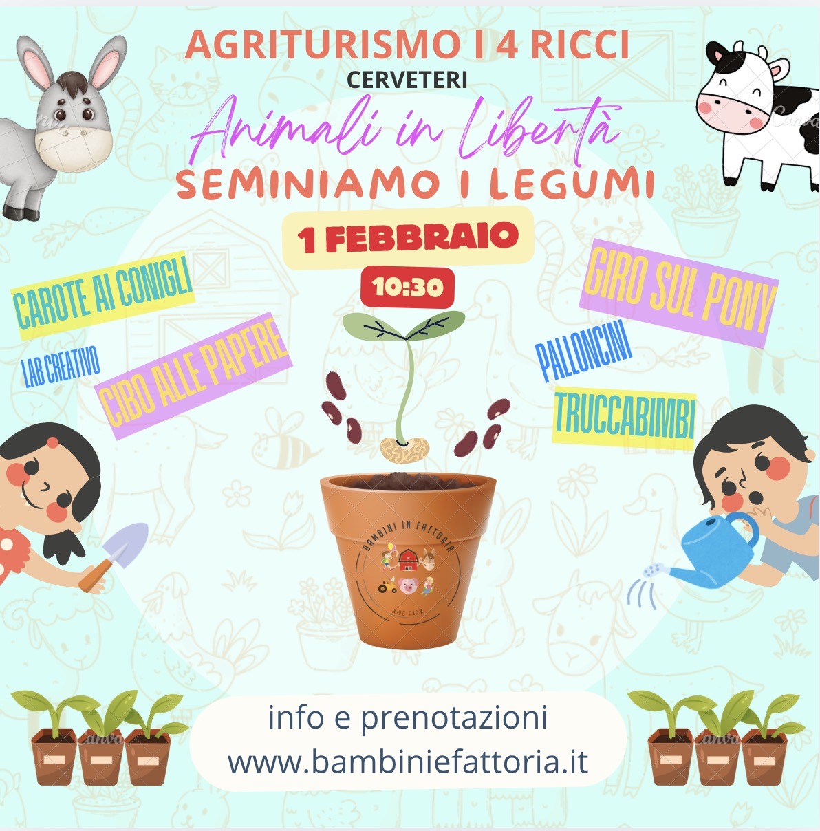 La fattoria chiude alle 16:00, si può portare pranzo al sacco(solo nell’area della fattoria) oppure prenotare il pranzo in Agriturismo al 3889842795Le attività durante l'evento sono libere e senza orari programmati, permettendo ai partecipanti di godere dell'esperienza in modo spontaneo e rilassato
