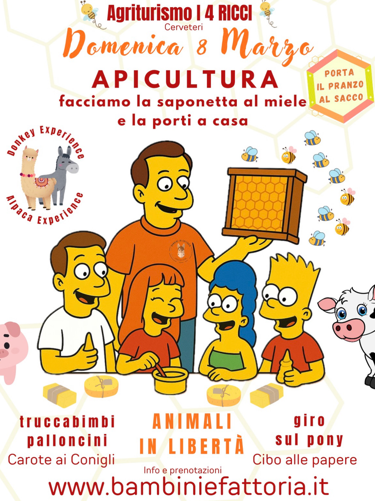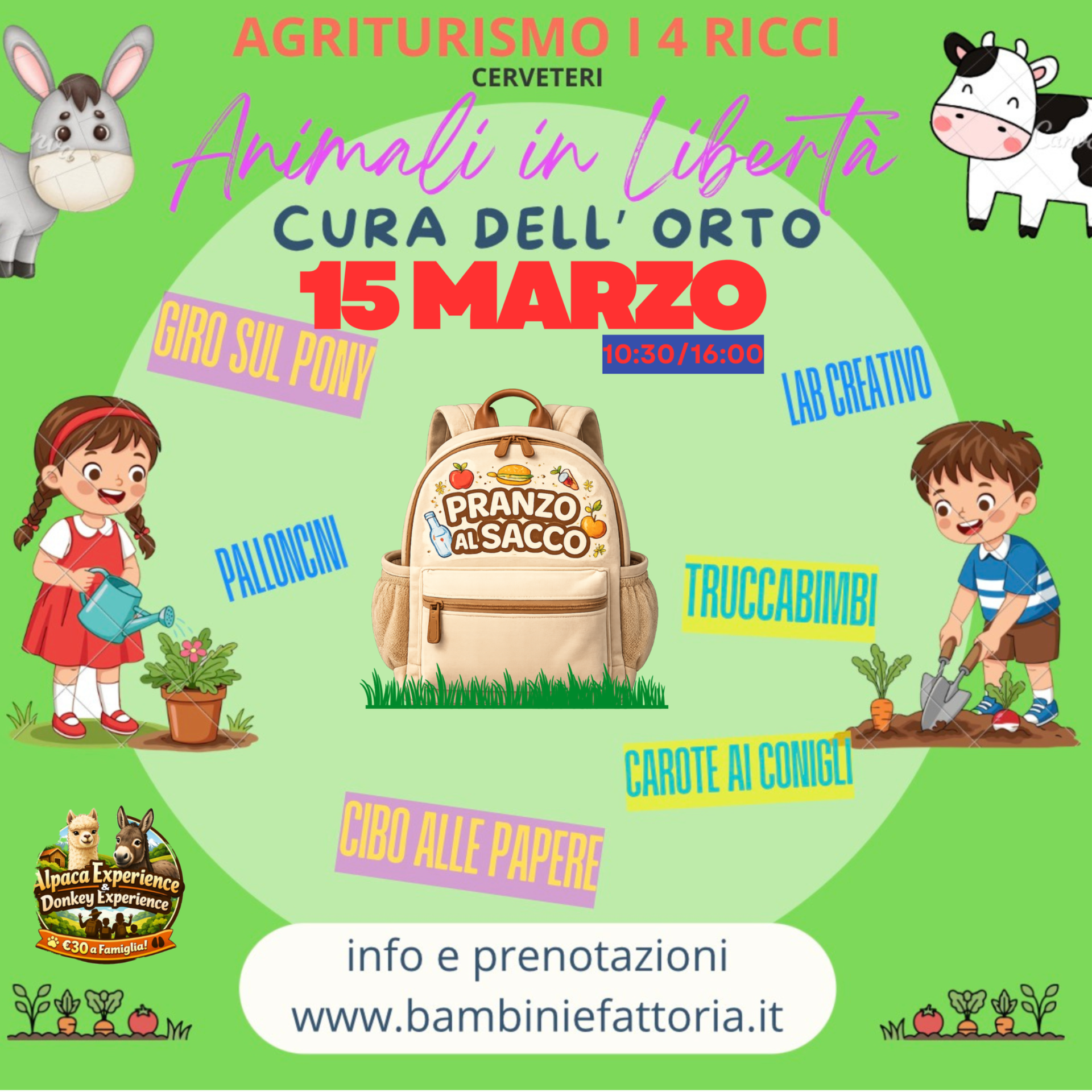 La fattoria chiude alle 16:00, si può portare pranzo al sacco(solo nell’area della fattoria) oppure prenotare il pranzo in Agriturismo al numero tel. 3889842795